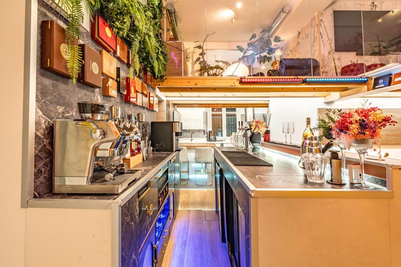 Two-Bedroom Deluxe Apartment. The hot tub and sauna are the standout features of this apartment. Featuring a private entrance, this air-conditioned apartment comprises 2 living rooms, 2 separate bedrooms and 2 bathrooms with a walk-in shower and a bath. Guests can make meals in the kitchen that comes with a stovetop, a refrigerator, a dishwasher and kitchenware. The spacious apartment provides a washing machine, soundproof walls, a minibar, a tea and coffee maker, as well as a flat-screen TV with streaming services. The unit offers 3 beds.